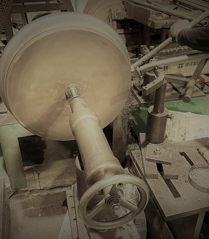 へら絞りは従来熟練技能者への依存度が高く自動加工が困難な加工ですが、弊社は業界ではいち早くスピニング加工機を導入し、自動加工への取組みを行ってきました。