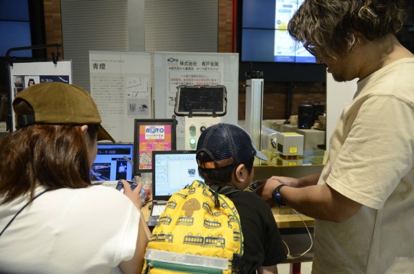 ワークショップ へら絞り製品に金属プリンターで名前を印字